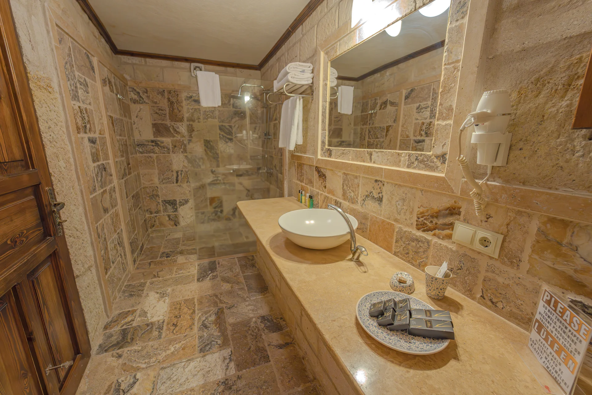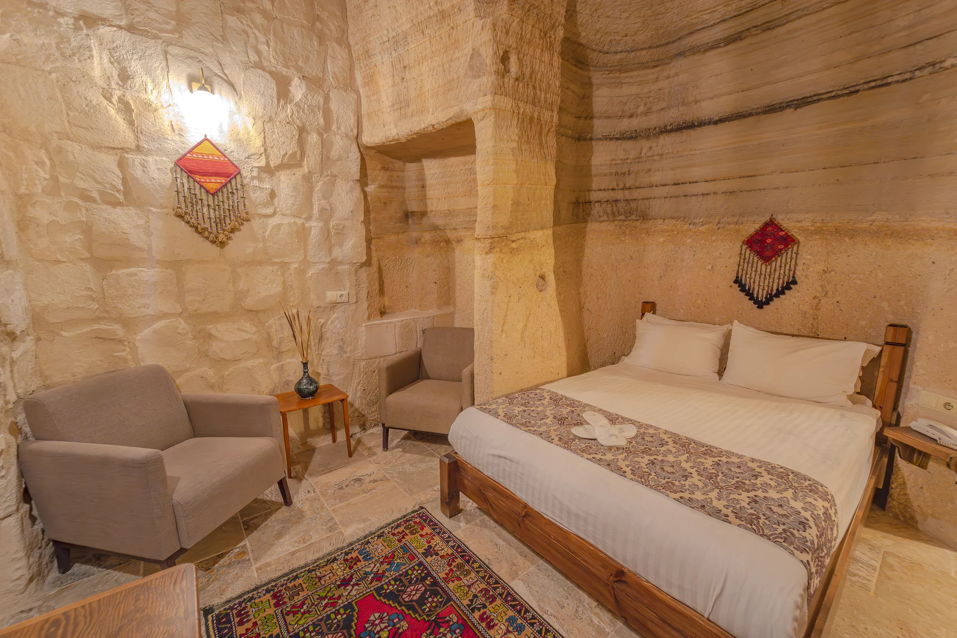 Kapadokya, Göreme'de, masalların konusu olan peri bacalarından biri de otelimizde yer almaktadır. Bu peri bacası odası, doğrudan doğal kaya oluşumuna oyulmuş benzersiz bir deneyim sunarak, yüzyıllardır Kapadokya kültürünün bir parçası olan otantik bir mağara konut deneyimi sağlar.