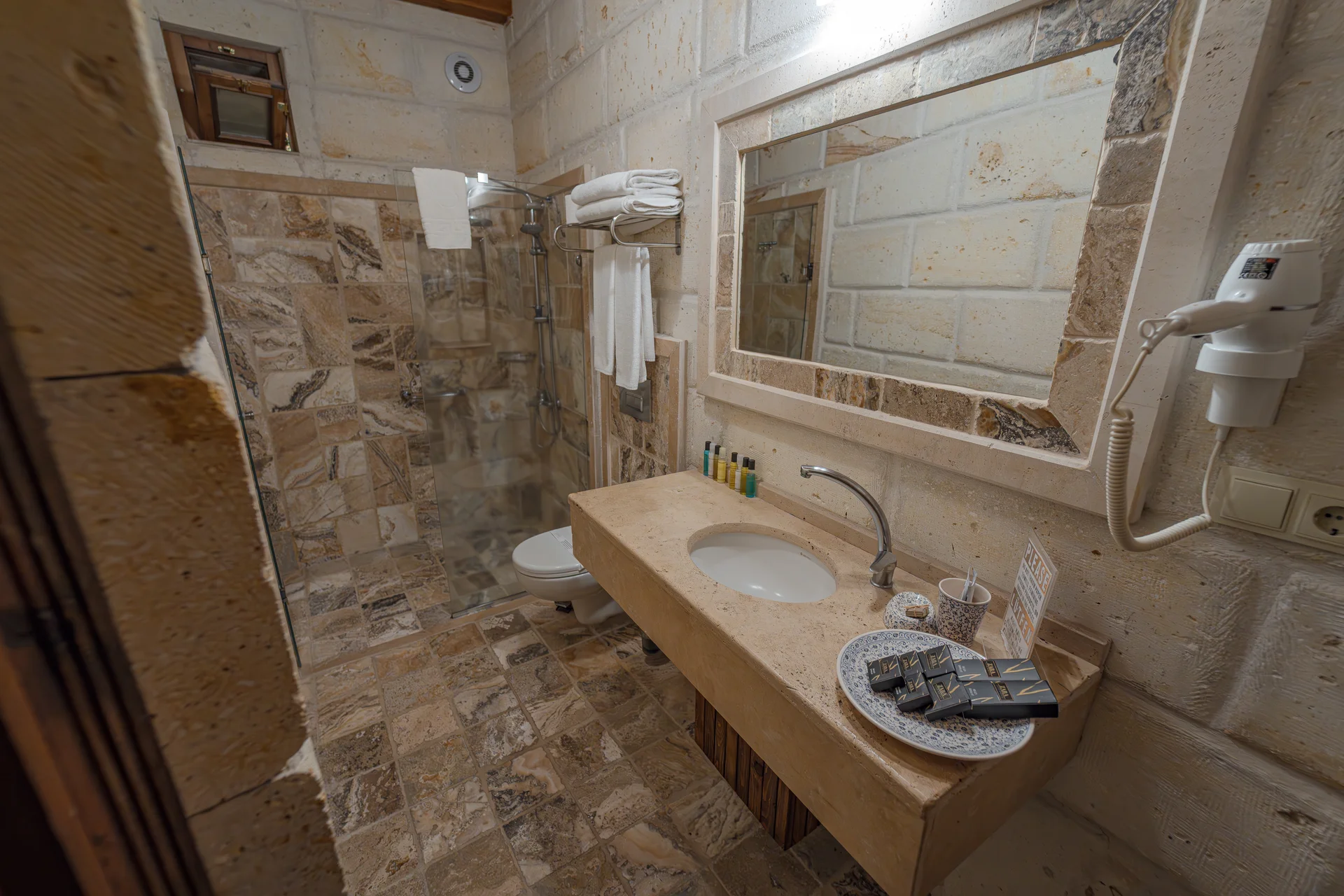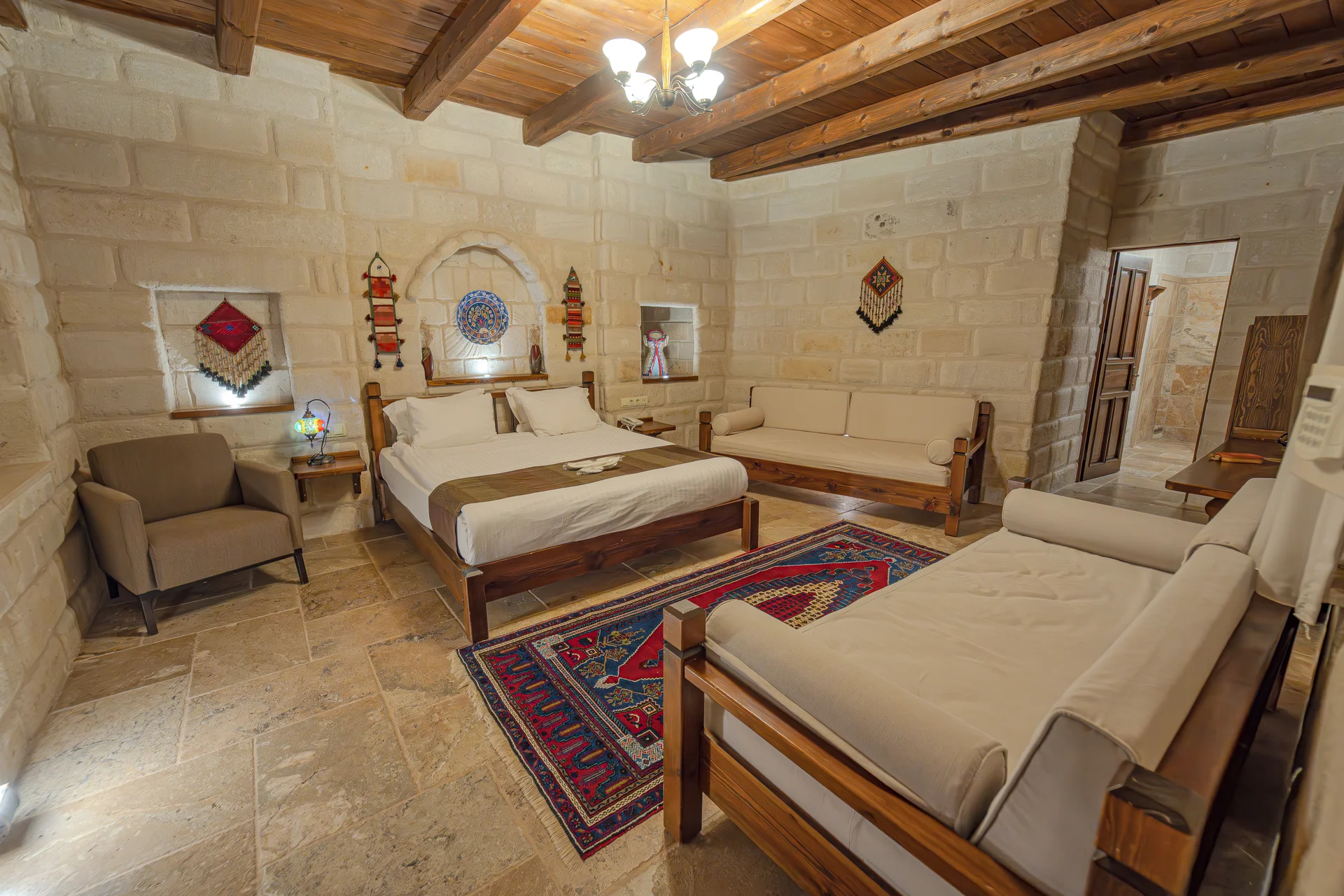 Kapadokya'da, Göreme'de bulunan bu ikiz yataklı taş oda, bölgeye özgü taşlarla inşa edilmiş olup pratik tasarımı ile dikkat çekmektedir. Bu fonksiyonel konaklaması, geleneksel Kapadokya mimarisini modern konforla birleştirerek misafirlere rahat bir taş oda deneyimi sunar.
