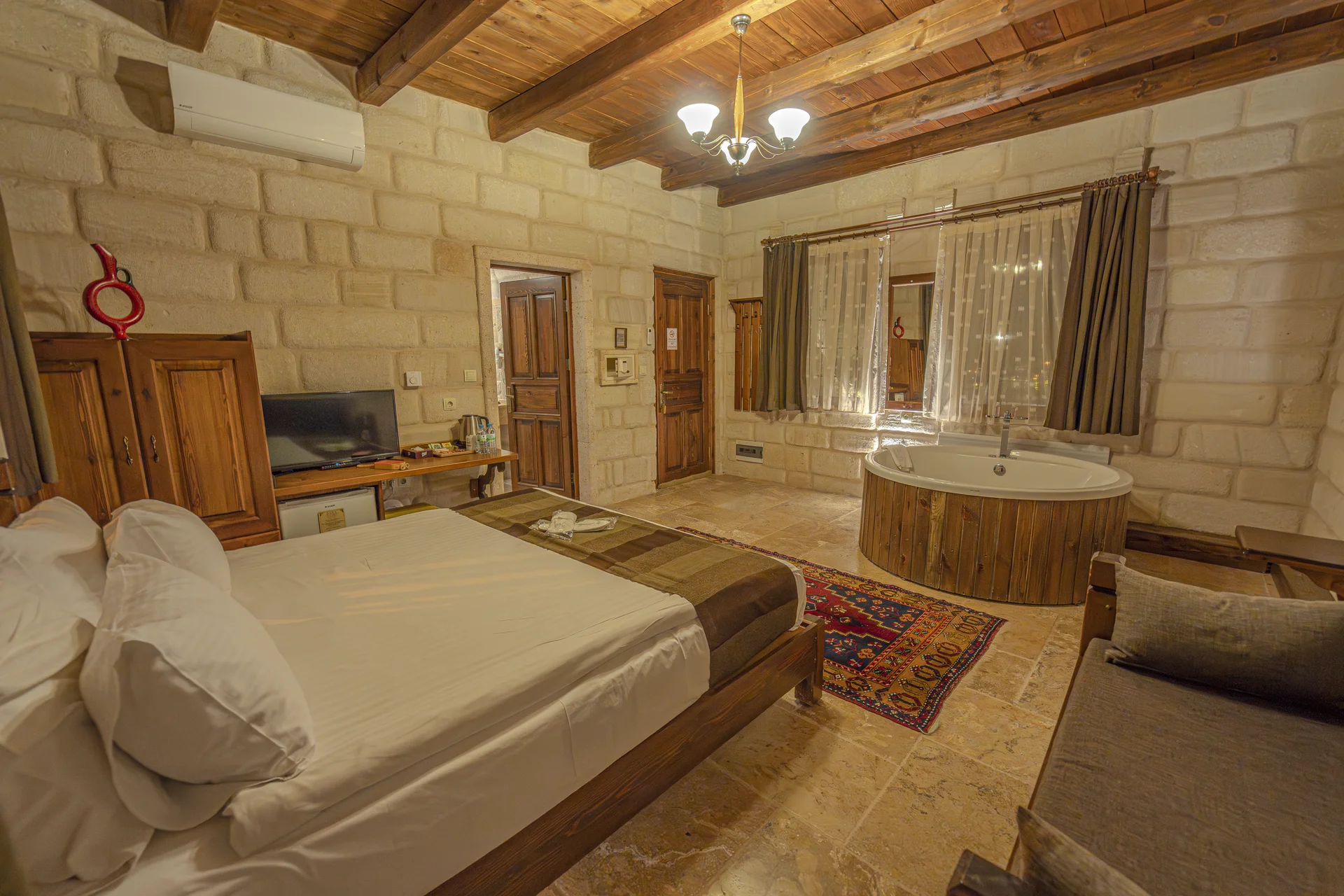 Ubicada en el corazón de Capadocia, Göreme, nuestra habitación cueva superior presenta un diseño bien planificado tallado en antiguas formaciones rocosas. Este auténtico alojamiento en cueva combina la arquitectura tradicional de Capadocia con comodidades de calidad, ofreciendo a los huéspedes una experiencia agradable.