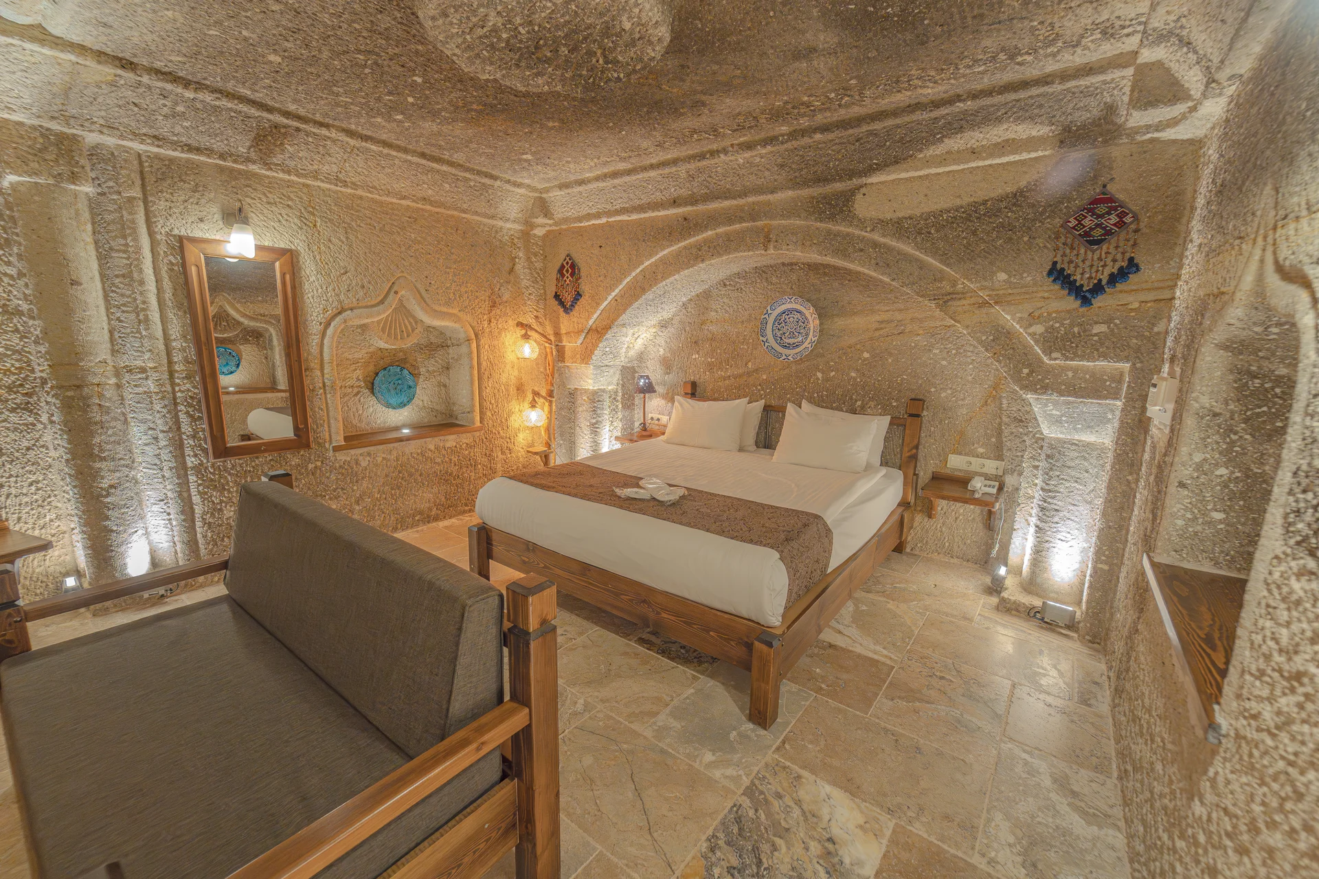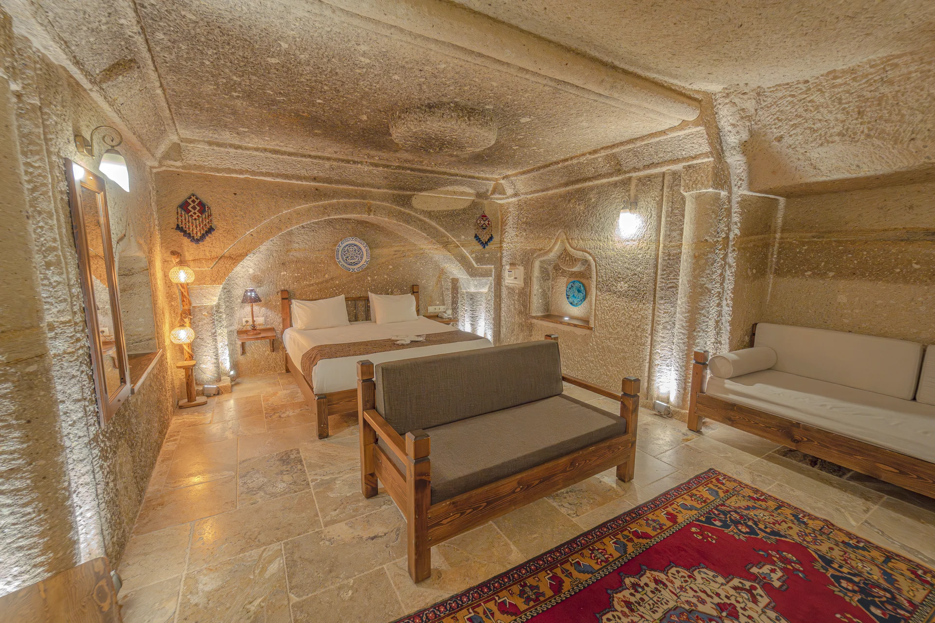 Located in the heart of Cappadocia, Göreme, our superior cave room features a unique design carved directly into the ancient rock formations. This authentic cave accommodation offers guests an extraordinary experience, combining traditional Cappadocian architecture with modern comfort amenities.