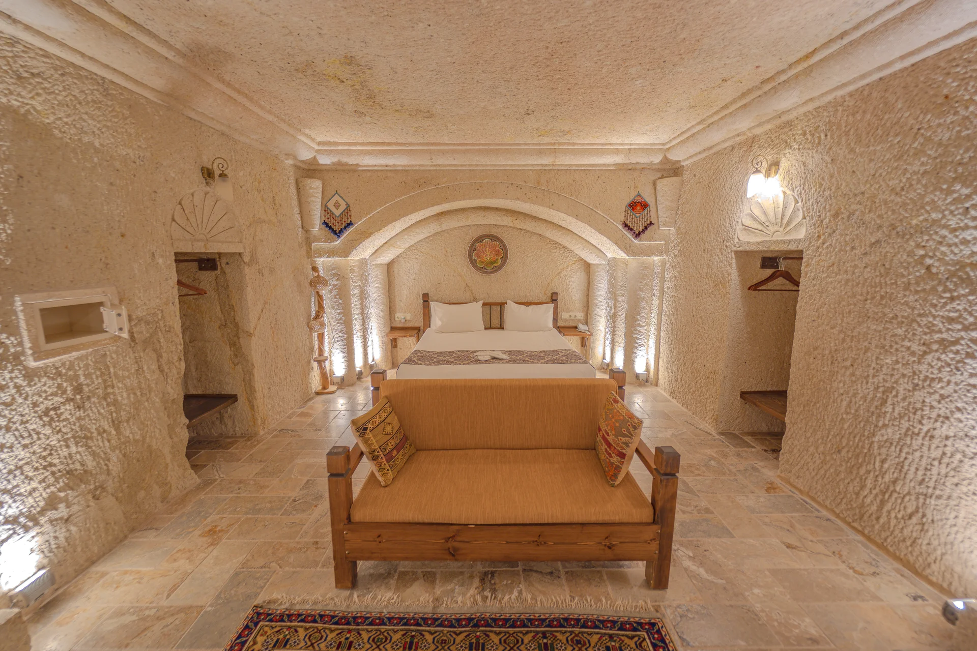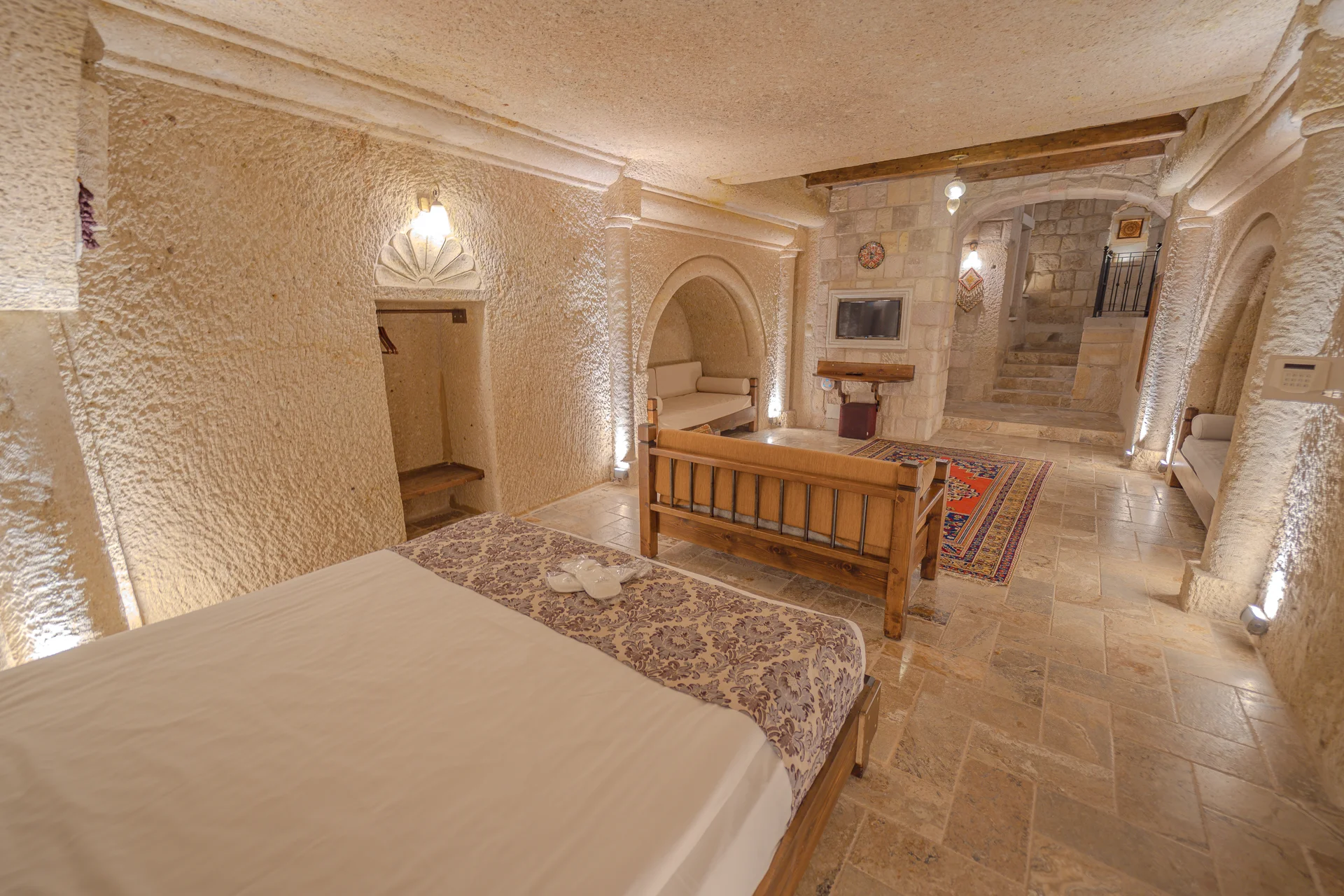 Located in the heart of Cappadocia, Göreme, our king cave room features a magnificent design carved into ancient rock formations. This luxurious cave accommodation combines traditional Cappadocian architecture with premium comfort amenities, offering guests a royal experience.