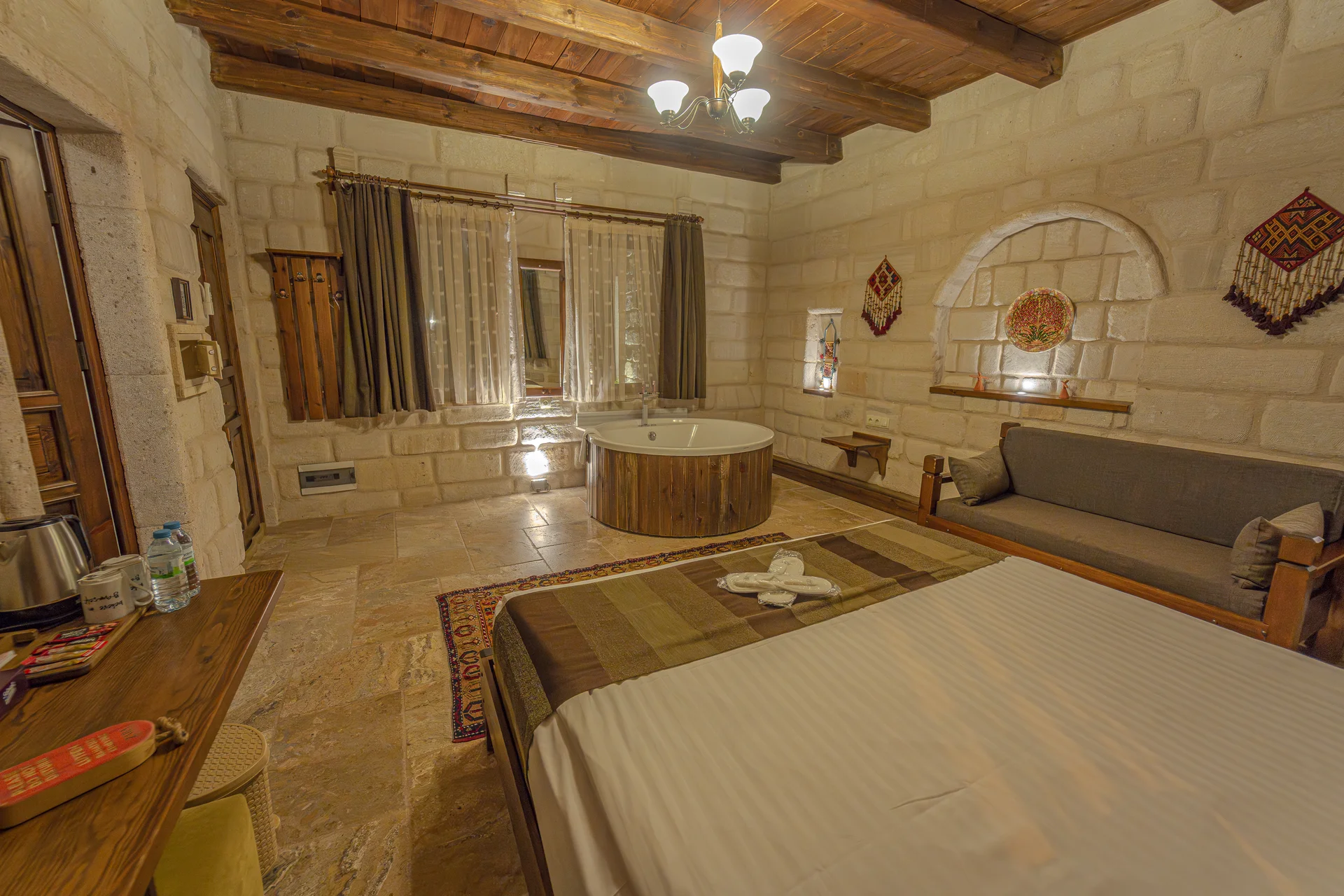 Located in the heart of Cappadocia, Göreme, our superior cave room features a well-designed layout carved into ancient rock formations. This authentic cave accommodation combines traditional Cappadocian architecture with quality comfort amenities, offering guests a pleasant experience.